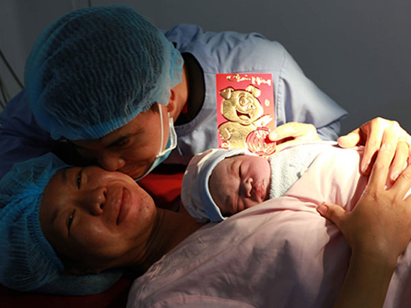 5 bé trai, một bé gái cất tiếng khóc chào đời khoảnh khắc giao thừa 2019 tại Bệnh viện Từ Dũ (TP HCM).