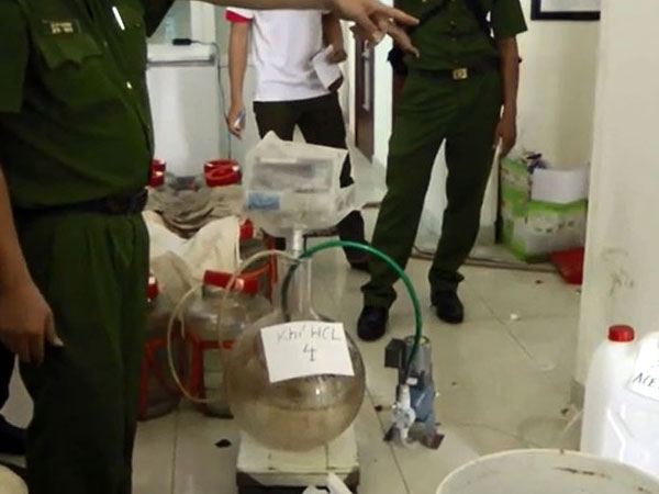 Hóa chất được Văn Kính Dương mua ở Hà Nội, đưa đến các xưởng bí mật tại TP.HCM và các tỉnh, thành để gã anh họ điều chế, sản xuất thuốc lắc cùng ma túy đá.