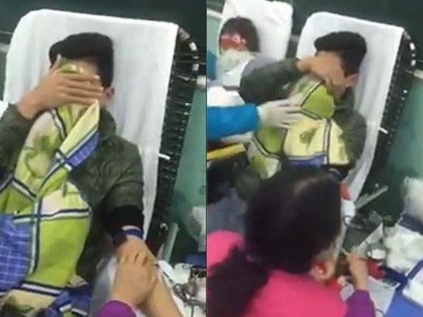 Nam thanh niên sợ kim tiêm khi đi hiến máu, cô y tá phải liên tục trấn an còn bạn nữ cầm chăn che mắt anh chàng cho đỡ sợ. Hình ảnh khiến dân mạng “cười lăn cười bò”.