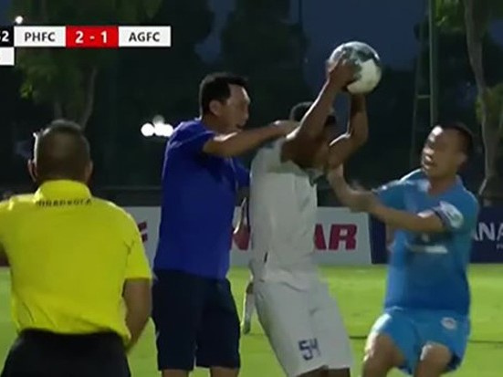 Sốc với clip HLV trưởng CLB Phố Hiến bóp cổ cầu thủ An Giang