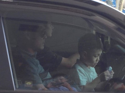 Hai con trai Triệu Phong, Triệu Châu và bà xã Thanh Thủy đã tới đại bản doanh của đội tuyển Việt Nam đón HLV Hữu Thắng trở về quê nhà Nghệ An sáng nay (8/12).