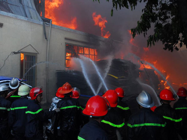 315 cán bộ chiến sĩ cảnh sát phòng cháy chữ cháy kiệt sức trong nỗ lực dập lửa tại vụ cháy nhà máy nệm Vạn Thành, Củ Chi, TP HCM.