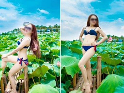 Thiếu nữ Hà Nội bị chỉ trích vì mặc bikini khoe dáng bên hồ sen