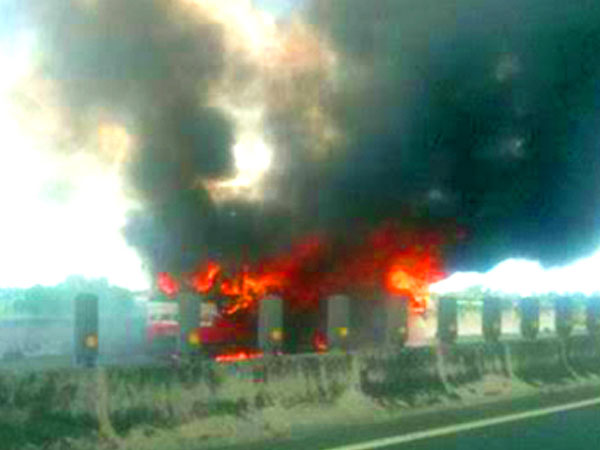 Ôtô khách cháy ngùn ngụt trên cao tốc Trung Lương