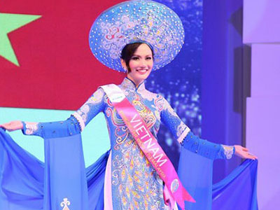 Người mẫu Diệu Linh đoạt danh hiệu Hoa hậu Đông Nam Á và giải Trang phục dân tộc đẹp nhất trong đêm chung kết.