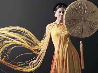 Nguyễn Thị Loan trình diễn áo tứ thân tại Miss Grand International