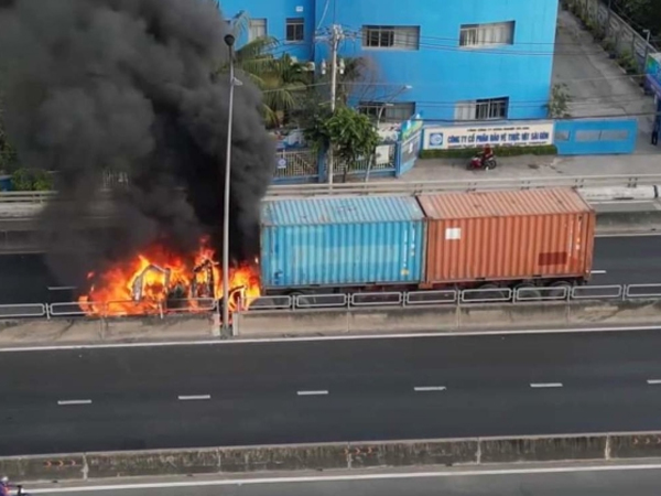 Sáng 28/3, ôtô đầu kéo cháy ngùn ngụt khi chạy trên cầu Phú Mỹ, khiến tuyến đường theo hướng từ TP Thủ Đức đến quận 7 ùn tắc trong hai giờ.