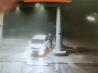 Một người lái xe chạy khỏi trạm xăng ở Okhta, vùng Sakhalin của Nga, mặc dù trước đó anh ta vừa gây ra vụ hỏa hoạn cho chính chiếc xe của mình.