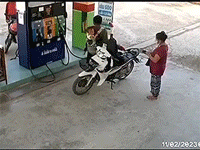 Kịch tính giây phút người đàn ông địu con trên lưng cố gắng dập đám cháy tại tiệm xăng