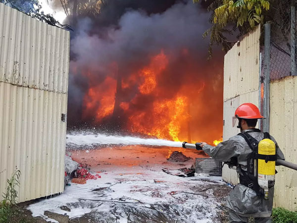 Xưởng gỗ dán của Công ty TNHH Hải Nam (Gia Lâm, Hà Nội) bốc cháy ngùn ngụt lúc rạng sáng. Công an TP Hà Nội đã huy động cả trăm cán bộ chiến sỹ PCCC dập lửa.