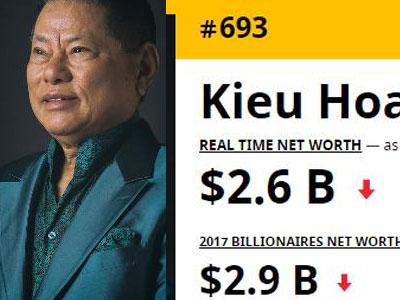 So với năm 2016, doanh nhân gốc Việt Hoàng Kiều đã giảm 240 bậc trên bảng xếp hạng người giàu nhất thế giới của Forbes.