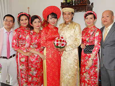 Nam diễn viên nổi tiếng thập niên 90 mặc đồ truyền thống trong lễ vu quy tại nhà gái sáng 16/12.