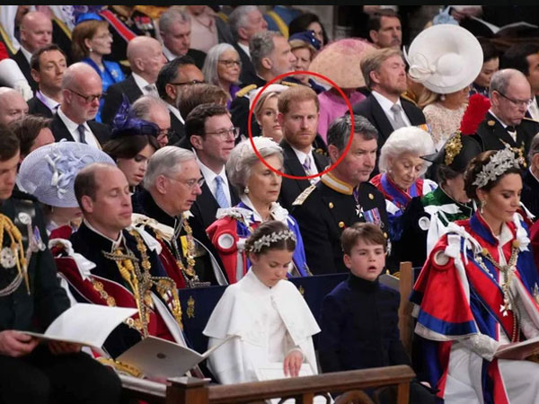 Harry ngồi cách gia đình 10 hàng ghế trong lễ đăng cơ