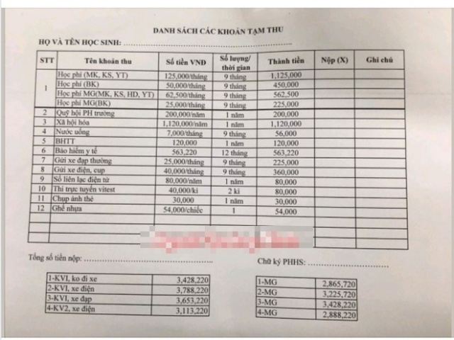 Mặc dù con được nghỉ học nhưng trường vẫn thông báo đóng học phí với số tiền lên tới cả trăm triệu đồng.