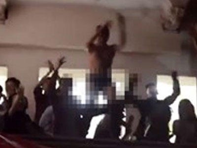 Trước thời khắc năm mới, nam thanh niên đứng trên tầng 2 ở Hà Nội cởi trần rồi tiếp tục có hành động tụt quần trong sự reo hò, cổ vũ ầm ĩ của nhiều người.