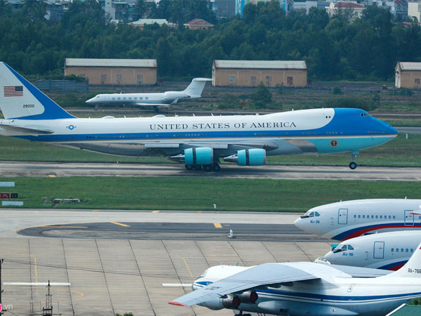 Sân bay Đà Nẵng đang trải qua những ngày tấp nập khi máy bay liên tục lên xuống. Những chuyên cơ chở lãnh đạo từ Mỹ, Nga, Trung Quốc đậu san sát nhau trong sân chờ.