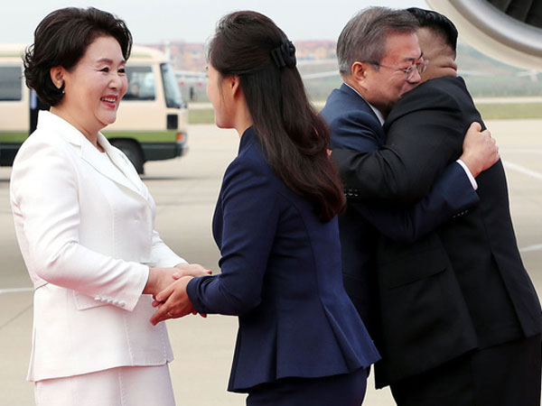 Hình ảnh ấn tượng nhất trong buổi sáng ngày hôm nay có lẽ là khoảnh khắc hai nhà lãnh đạo Kim-Moon và hai vị đệ nhất phu nhân trao cho nhau những cử chỉ nồng ấm và thân thiện.