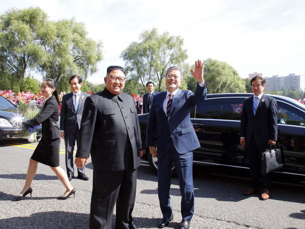Tổng thống Hàn Quốc Moon Jae In đến Bình Nhưỡng để cứu vãn tiến trình phi hạt nhân hóa đang bế tắc giữa Mỹ và Triều Tiên. Nhà lãnh đạo Kim Jong Un đã ra sân bay để đón ông Moon.