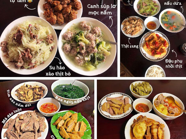 Dù phải nấu phần ăn cho cả 5-6 người lớn mỗi bữa nhưng cô vợ tên Ngân này vẫn khiến người ta phải trầm trồ khi cho ra đời loạt mâm cơm cực ngon lành, phần trang trí cũng xứng đáng điểm 10.