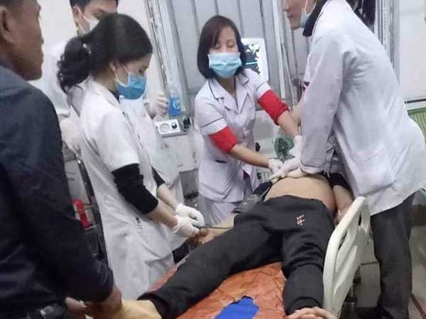 Hai thanh niên nằm gục trên vũng máu sau vụ hỗn chiến được đưa đi cấp cứu. Tuy nhiên một đối tượng trong số này đã tử vong.