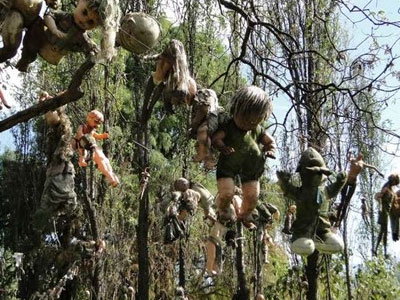 Nếu lạc bước vào đảo Búp bê La Isla de las Muñecas ở Mexico, bạn sẽ không tránh khỏi cảm giác lạnh gáy trước cảnh tượng hàng trăm con búp bê cũ kĩ giăng kín trên những tàng cây. Người dựng lên khung cảnh "ma quái" này là một ẩn sĩ.