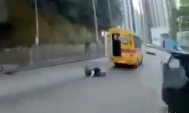 Hình ảnh từ camera hành trình cho thấy cậu bé bị rơi ra từ xe bus đưa đón học sinh của nhà trường, khiến cảnh sát Hồng Kông phải vào cuộc điều tra.