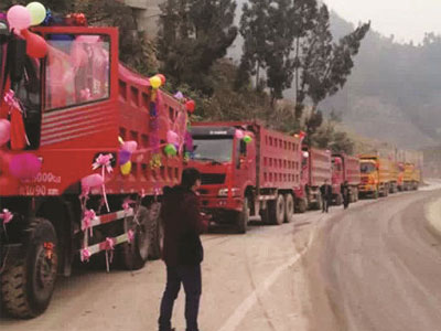 Đám cưới gây chú ý bởi đoàn rước dâu gồm 12 chiếc xe tải
