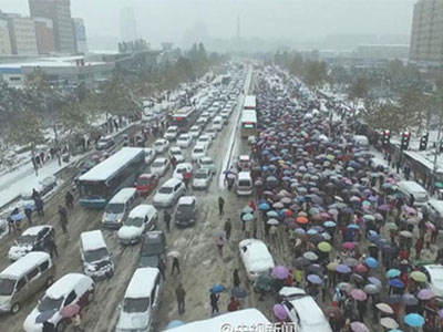 Tắc đường khủng khiếp ở Trung Quốc do tuyết rơi