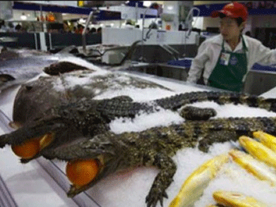 Cá mập, cá sấu nguyên con, thịt cáo, đầu cừu... là các mặt hàng tại siêu thị Trung Quốc khiến bạn giật mình.