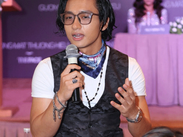 Người mẫu Hữu Vi bị cho là thiếu lịch sự, không tôn trọng nhà báo khi ngồi lên bàn trả lời câu hỏi của phóng viên tại họp báo Gương mặt thương hiệu.