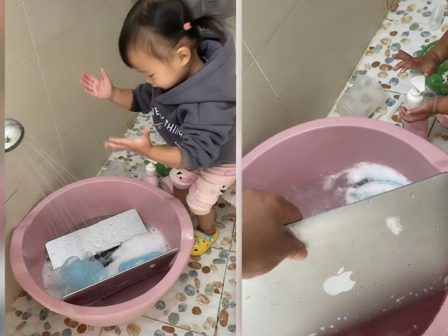 Một phụ nữ Trung Quốc phát hiện con gái 2 tuổi đã mang laptop của cha đi "rửa" bằng nước xà phòng, sau khi nghe anh này phàn nàn máy tính "có quá nhiều rác".