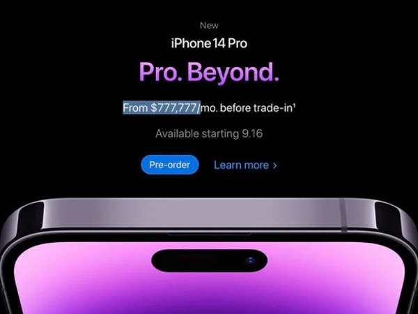 Nhiều người sẽ sốc khi mức giá dành cho các mẫu iPhone 14 trên trang web của Apple là 777.777 USD/tháng (tương đương 18,3 tỷ đồng).