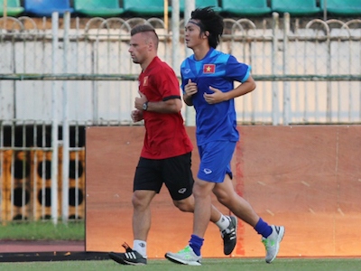 Chiều 17/11, tiền vệ đội tuyển Việt Nam đã ra sân và chạy cùng bác sĩ.