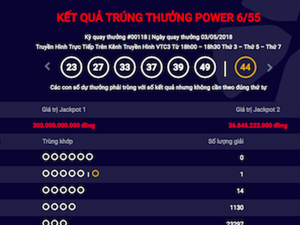 Giải Jackpot 2 trị giá 67 tỷ có người trúng, giải 300 tỷ vẫn vô chủ