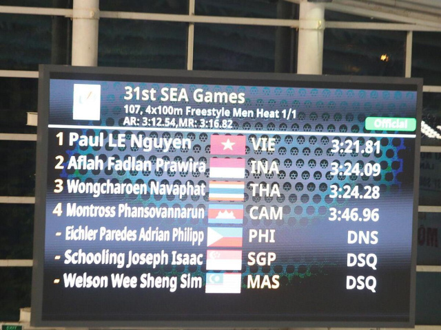 Tranh cãi gay gắt nổ ra giữa đoàn Singapore và tổ trọng tài môn bơi sau khi cựu vô địch Olympic Joseph Schooling bị xác định phạm quy, khiến Singapore bị tước HCV tiếp sức 4x100 tự do nam.