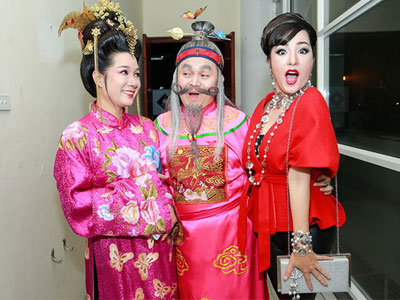 Xuân Hinh hóa ông già râu tóc bạc phơ, Thúy Nga đầy xinh đẹp, quyến rũ còn Tự Long lại khoe body có lông ngực rậm rạp.
