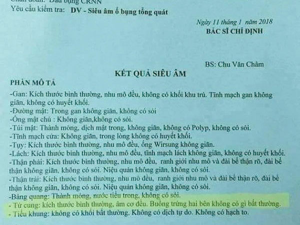 Kết quả siêu âm khiến anh T. ngã ngửa khi ghi rõ tử cung và buồng trứng 2 bên không có gì bất thường.