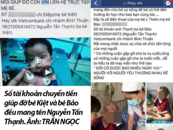 Bất chấp đạo lý, những kẻ mạo danh đăng cả hình ảnh thương tâm của bệnh nhi lên mạng nhằm mục đích lừa đảo.