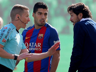 Một trong những trọng tài làm việc ở trận Barcelona - Real Madrid đã bị đình chỉ do vi phạm nguyên tắc và "quá thân mật" với cầu thủ Barca.