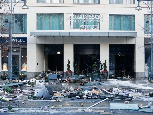 Thủy cung trụ đứng cao nhất thế giới, chứa 1.500 con cá nhiệt đới tại thủ đô nước Đức bất ngỡ bị vỡ khiến 1 lượng lớn nước đổ tràn ra đường phố.