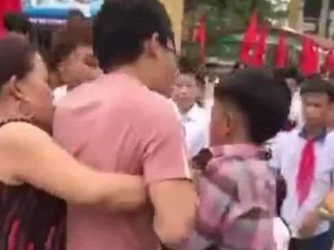 Nam sinh lớp 8 đi khai giảng bị phụ huynh lôi ra cổng hành hung