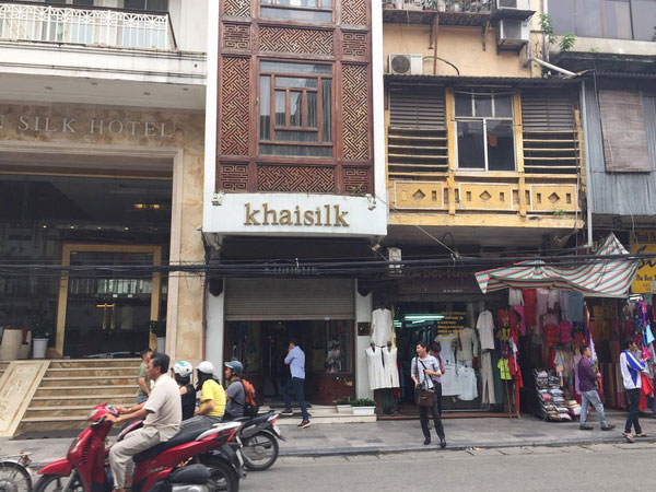 Trên phố Đinh Lễ, Hoàn Kiếm chỉ cách cửa hàng Khaisilk 113 Hàng Gai vài bước chân lâu nay khăn lụa loại 50 x 50 cm có xuất xứ Trung Quốc được bán với giá thấp nhất là 25.000, bằng 1/20 khăn lụa ở Khaisilk.