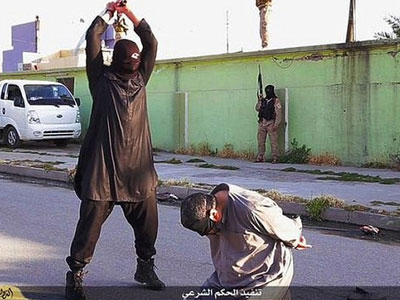 IS tung hình ảnh ghê rợn chặt đầu người đàn ông “ăn nói báng bổ“