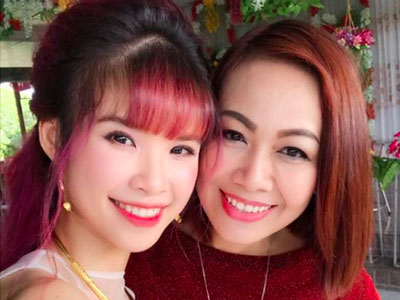 Má Năm - người luôn đồng hành bên cạnh Khởi My tự tay cột nơ từng chiếc thiệp cưới cho ngày trọng đại của con gái.