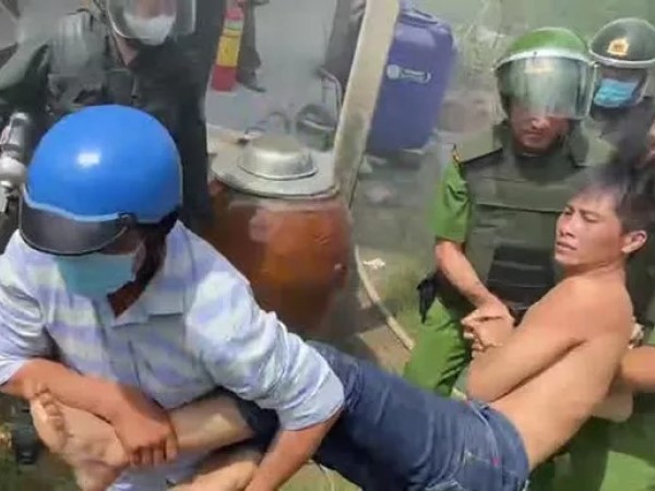 Sau khi có biểu hiện ngáo đá, Trọn đốt 2 căn nhà rồi dùng "bom xăng" cố thủ nhưng bị công an khống chế như phim hành động.