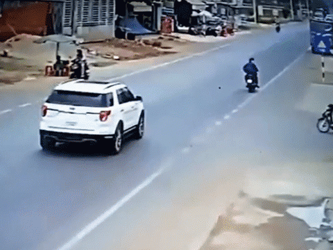 Tông thẳng vào đầu ô tô với tốc độ cao, nam thanh niên bị hất bay lên không trung, lộn nhiều vòng rồi văng vào lề đường.