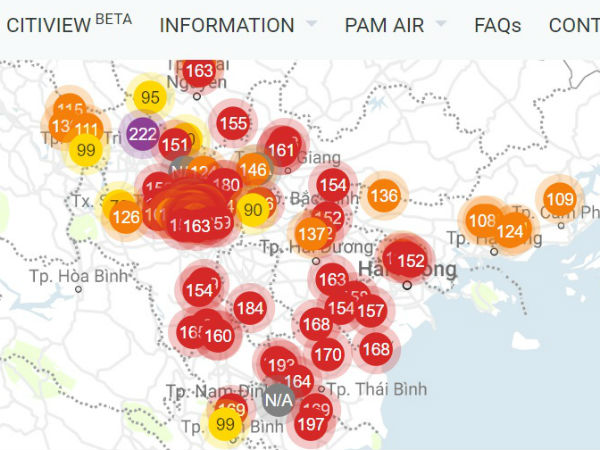 Theo số liệu quan trắc tại Cổng thông tin quan trắc môi trường UBND Tp. Hà Nội chất lượng không khí ở Hà Nội đang ở mức rất xấu.
