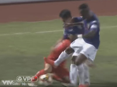 Tiền đạo Anh Đức suýt gãy chân vì pha bóng thô bạo