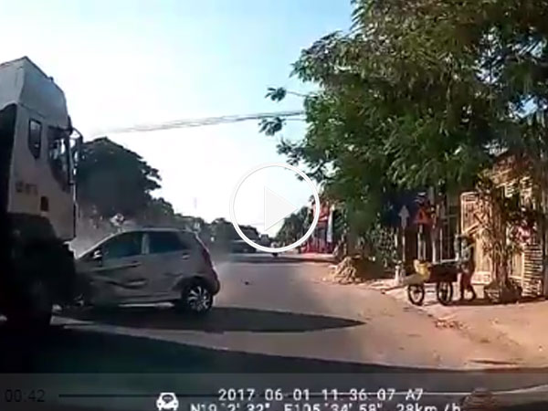 Clip: Kia Morning vượt ẩu cắt đầu xe container và cái kết đắng