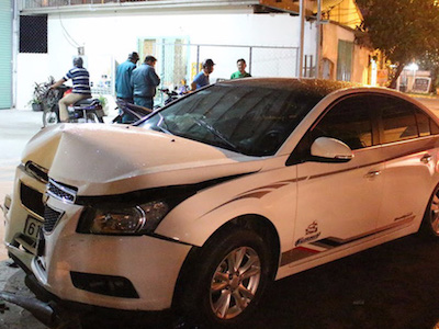 Ông chủ giận vợ lấy xế hộp tông thẳng vào cổng nhà, người làm vứt xe bỏ chạy